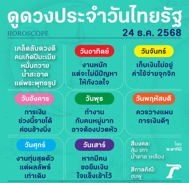 ดูดวงวันนี้ กับ ไทยรัฐ แนวทางมูเตลู เพื่อความโชคดี